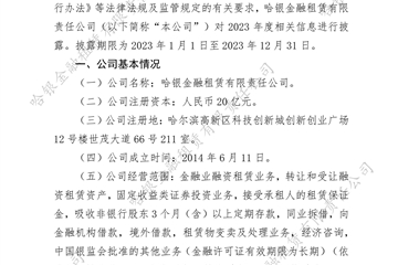 哈銀金融租賃有限責任公司2023年度信息披…